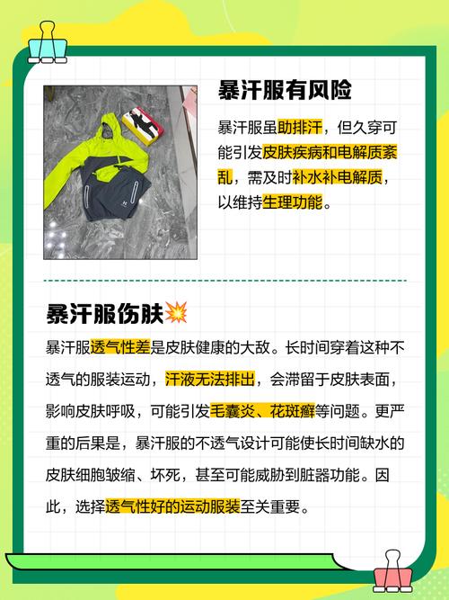 〖One〗、暴汗服的利处主要在于短期内迅速出汗,可能帮助专业运动员在短时间内达到瘦身效果以满足特定重量级别的需求;但其弊端也较为明显:透气性差:暴汗服的设计导致其透气性不佳,长时间穿着可能会引起身体不适。