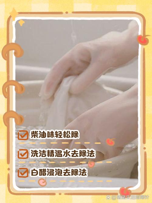 〖Six〗、衣服弄上柴油,可以采用以下方法来清洗并去除异味:使用汽油清洗:在柴油污渍处涂抹适量汽油,轻轻揉搓片刻。随后用清水将衣物彻底冲洗干净,确保汽油和柴油都被清洗干净。使用洗衣液或加酶洗衣粉:在有柴油印迹的地方直接涂抹洗衣液原液或加酶洗衣粉。静置几分钟,让清洁剂充分渗透。