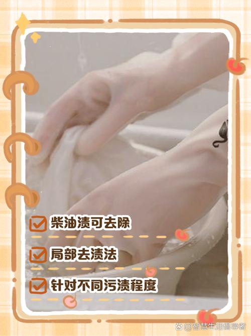 牙膏预涂法:在有柴油污渍处均匀涂抹适量牙膏,轻轻揉搓,让牙膏充分渗入污渍中,放置几分钟后,再用清水冲洗,能初步去除部分柴油。 洗洁精清洗:将衣服有污渍部分浸泡在加了洗洁精的温水中,浸泡约半小时,期间适当揉搓,因为洗洁精对油污有较好的乳化分解作用,能有效去除柴油。