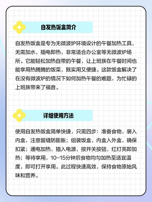 〖Three〗、此外,不当使用电热饭盒也可能引发安全问题。例如,容器密封不良可能造成烫伤或泄漏;电线或加热装置损坏则可能引发触电或火灾。长期使用电热饭盒也可能对健康产生负面影响。若容器材质不安全,食物可能受到污染,导致慢性中毒。快速加热可能导致食物营养流失,影响营养均衡。