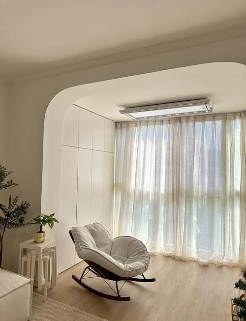 〖Two〗、如果是这样的情况下,小编个人觉得把智能晾衣架安装在卧室里面会比较好,因为这样客厅的阳台就可以空出来,我们可以在上面布置一些绿植,搭一个吊床之类的,把这片空间打造成为一个小休闲区。