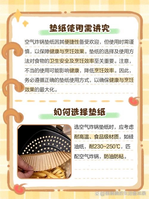 因此,虽然空气炸锅不是“一定”要垫纸,但垫纸确实能够带来诸多便利和烹饪优势,建议在烹饪过程中使用垫纸。