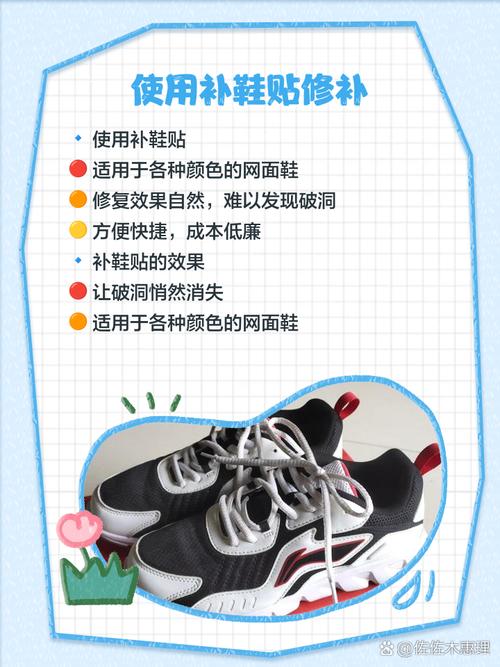 针对网鞋破了个洞的问题,可以采取以下几种补救措施:使用贴画缝补 方法概述:选取一种可以贴在鞋子上的贴画,将其裁剪成适当大小和形状后,缝补在破洞处。优点:这种方法简单易行,不需要复杂的工具和材料,且贴画可以根据个人喜好选取颜色和图案,既能遮挡破洞,又能增加鞋子的美观度。