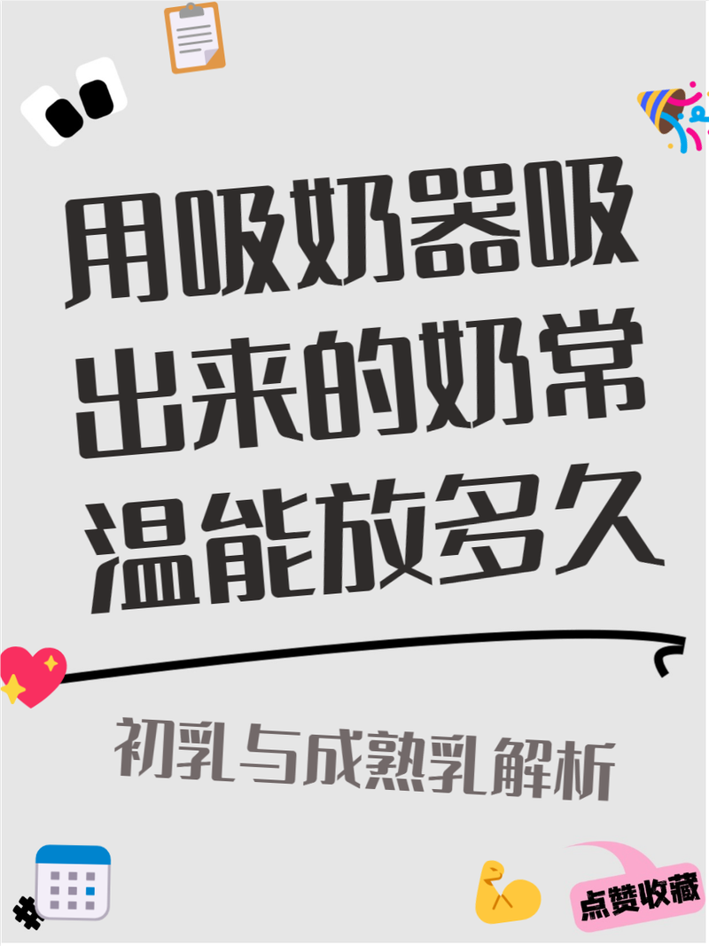 〖Three〗、吸奶器吸出来放恒温能放的时间:初乳:在27到32℃内可保存12个小时。成熟母乳:15℃以下可放置24小时;19到22℃内则缩短到10小时。但需注意,由于吸奶器和奶瓶容器的清洁度问题,给宝宝饮用时需谨慎。一般情况下,吸出的母乳在常温下只能放置两到三个小时。