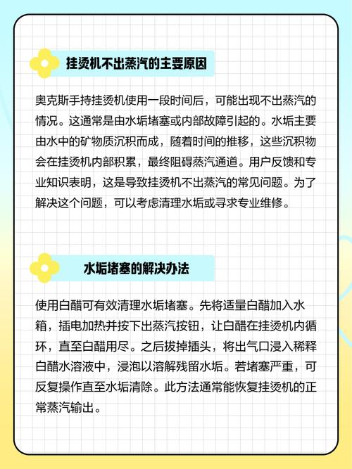 挂烫机水垢清理核心方法:白醋/柠檬酸浸泡溶解+定期预防维护理解了水垢形成与用户清洁诉求后,解决方案可从即时处理与日常维护双向入手:重点清理步骤 白醋溶解法:水箱倒入3:7比例的白醋与清水混合液(如100ml醋+200ml水),启动挂烫机出蒸汽10分钟,静置1小时后反复冲洗水箱3次。