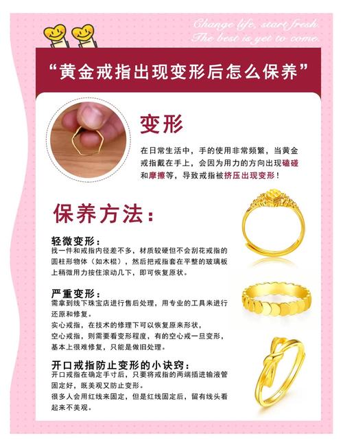 黄金戒指变色的补救方法 牙膏清洗法:用棉布沾上牙膏,在变色的黄金戒指上来回摩擦,去除表面的细纹和尘垢,然后用稀释过的家用洗洁精清洗,最后用清水冲洗干净。这种方法适用于大多数变色情况。专业清洗:如果戒指上有镶嵌名贵宝石,建议送到专业的黄金首饰店铺进行清洗和维修。专业人员会使用专业工具和清洁剂,确保戒指恢复光泽而不损伤宝石。