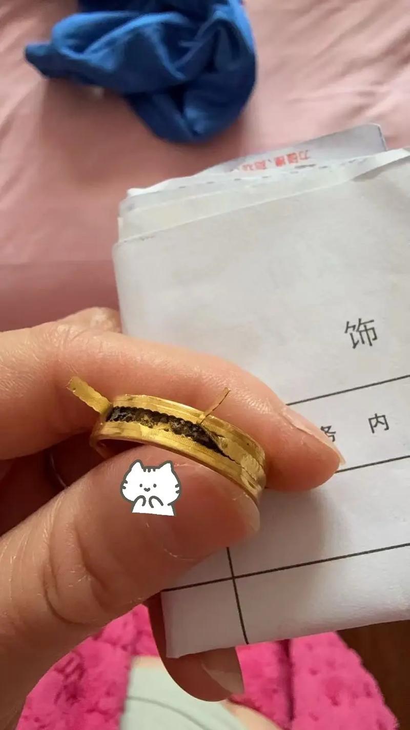 我三年前买了一套黄金首饰,一直没戴过,今天拿出来发现戒指内侧...
