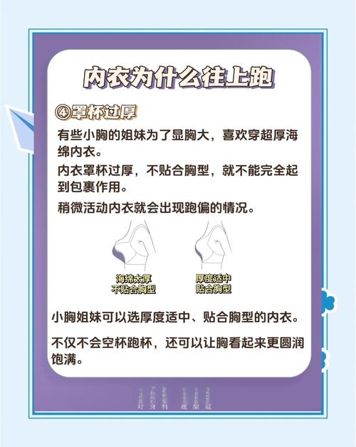 保暖内衣穿着往上跑,主要是因为保暖内衣尺码短小、弹性不足、材质光滑以及裁剪方向不对等原因。尺码短小:如果保暖内衣的尺码偏小,穿着时会因为紧绷而往上跑。此时,可以考虑更换大一码的保暖内衣,或者到专业的裁缝店进行修改。弹性不足:保暖内衣的弹性不够好,也会导致穿着时往上跑。