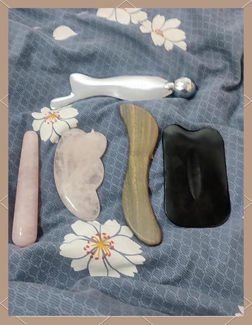 〖Six〗、玉石刮痧板因其质地坚硬、凉爽,能够促进面部血液循环,对于提亮肤色和紧致肌肤有一定的帮助。 水牛角刮痧板含有天然的角质成分,对皮肤温和,使用时能够促进面部毒素的排出,有助于保持皮肤的健康。