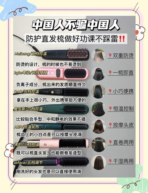 〖Four〗、直发梳:对头发的伤害相对较小,使用后头发不易干枯毛躁。拉直:由于直板夹的高温作用,可能对头发造成一定的损伤,容易导致头发干枯、毛躁。总结:直发梳更适合追求简便快捷、对头发伤害较小的用户;而拉直则更适合追求持久定型效果的用户,但需注意对头发的保护。