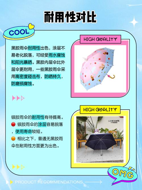 综上所述,黑胶伞在防紫外线性能、耐用性和使用体验方面均优于银胶伞。因此,在选取雨伞时,建议优先考虑黑胶伞以获取更好的防紫外线保护和使用体验。