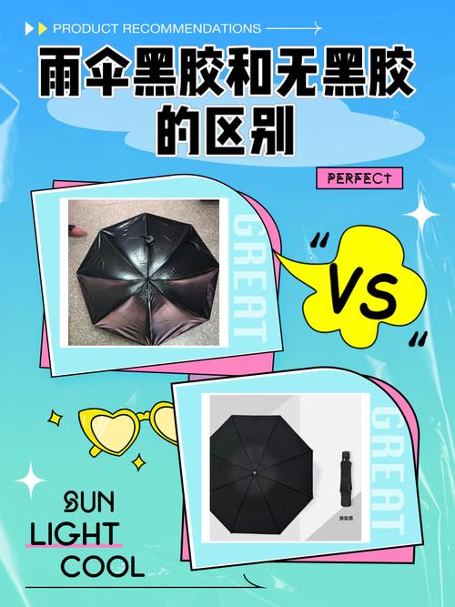 〖Four〗、首先,从功能上来看,有黑胶的伞主要聚焦于防晒功能,能够有效遮蔽紫外线,保护使用者的皮肤健康。而无胶雨伞则同时兼具遮雨和防晒的功能,但相较于专业的遮阳伞,其防晒效果可能稍逊一筹。其次,从重量角度来看,由于有黑胶的伞在材料上通常会使用防紫外线涂层,因此它的重量会稍微重于一般的无胶雨伞。