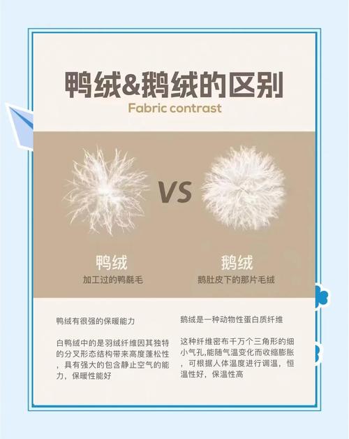 〖Two〗、鹅绒一般比鸭绒贵约50%到100%。鹅绒和鸭绒的费用差异主要体现在羽绒的品质上。鹅绒与鸭绒相比,具有多个优势。以下是详细解释鹅绒费用较高的原因: 鹅绒的绒朵更大:鹅绒的绒丝相对较长且蓬松,其绒朵较大,这使得鹅绒的保暖性能更佳。因此,在羽绒制品中,使用鹅绒能够提供更好的保暖效果。