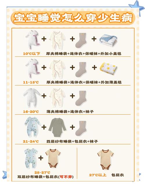 〖Two〗、纯棉内衣:如果宝宝与父母同睡,可以给宝宝穿一件纯棉的内衣,上下分体或连体均可。腹部保暖:在宝宝的肚子上绑块毛巾或穿个肚兜,以加强腹部的保暖,防止受凉。被子选取:根据天气调整:如果天气特别寒冷,可以在睡袋外加盖一层被子,但要注意不要过厚,以免宝宝过热。