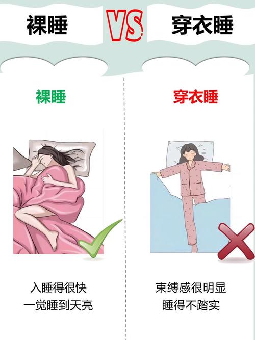 〖One〗、从舒适度角度看:裸睡比穿衣服睡觉更加自由和无拘无束,有助于提高睡眠质量。穿衣服睡觉可能会让人感觉身体负担重,有被包裹的感觉。从个人卫生角度看:穿睡衣睡觉相对更卫生,因为裸睡时身体直接与床单被褥接触,如果床单被褥清洗不及时,可能会与细菌频繁接触,对身体造成影响。因此,裸睡时需要勤换洗睡衣、床单被褥。