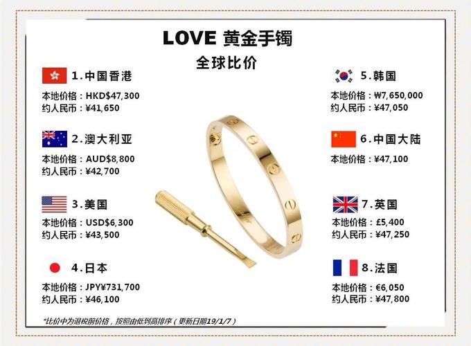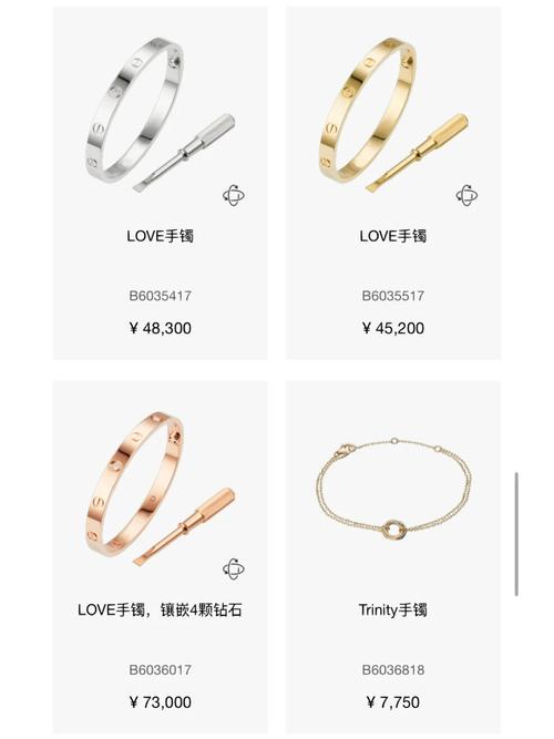 首先,卡地亚手镯的费用因其款式和材质的不同而有所差异。以卡地亚LOVE系列18K玫瑰金手镯为例,最便宜的费用大约在30,000元人民币左右,而二手产品的费用也在25,000元左右。其次,卡地亚手镯中最经典的款式当属LOVE系列手镯。这款手镯因其独特的设计而备受追捧,费用自然不菲。