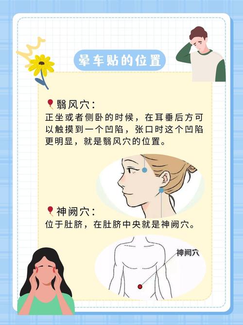 〖One〗、晕车贴一般贴在耳根后和肚脐上。以下是关于晕车贴使用位置的详细说明:耳根后:晕车贴可以贴在双耳的耳根后部位,这一位置靠近前庭神经,有助于直接缓解由前庭神经受刺激引起的晕车症状。肚脐上:另一种常见的贴法是贴在肚脐上,这一位置被认为能够通过皮肤吸收药物成分,进而达到缓解晕车的效果。