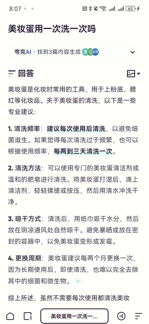 〖Three〗、个人判断:虽然一般建议每两个月更换一次美妆蛋,但实际应用中还需根据个人使用频率、清洗效果以及美妆蛋的质地变化等因素进行综合考虑。如果发现美妆蛋变形、掉渣或颜色变化明显,即使未到两个月也应考虑更换。