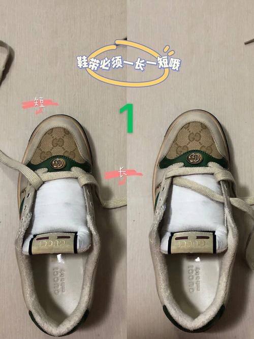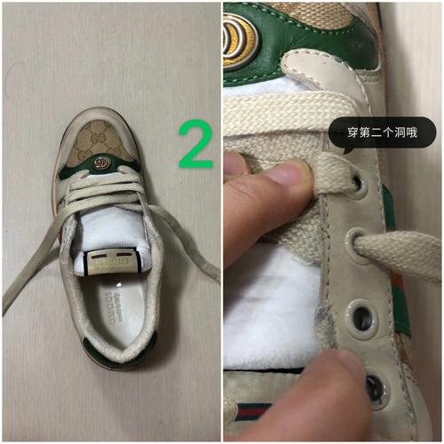 〖Three〗、Gucci鞋带的系法可以采用一种美观且独特的蝴蝶结系法,具体步骤如下: 穿好鞋带 将运动鞋的鞋带按照原有的鞋带孔穿好,确保鞋带平整无扭曲。 折叠鞋带 将末端的两条鞋带成对折叠,两侧都以绳结的方式折叠好,为后续形成蝴蝶结做准备。