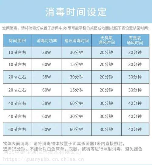 〖Three〗、使用紫外线消毒灯进行消毒时,通常在开启5分钟后,病菌即可被有效杀灭。对于家庭物品的消毒,建议在15至30分钟内完成,以保证效果同时避免过度照射。若要对整个房间进行消毒,所需时间会相应增加,通常需超过30分钟。在特定情况下,可以根据需要延长至1小时或两小时。