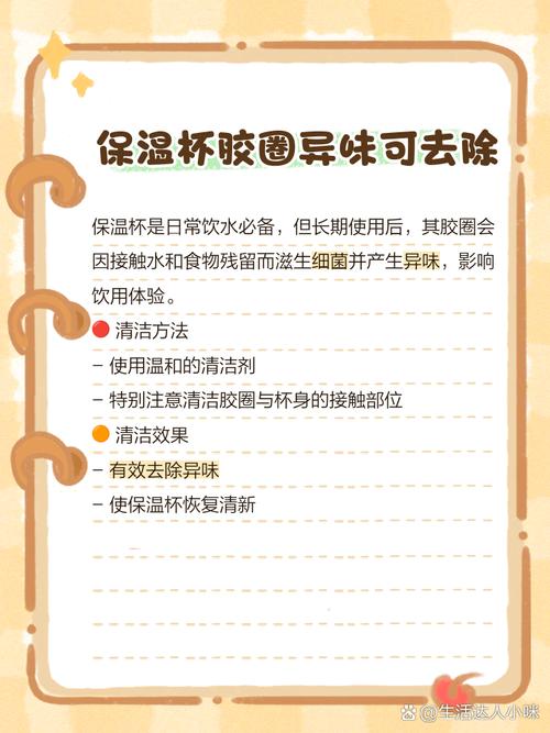〖Four〗、保温杯盖硅胶异味的去除方法有以下几种:使用白醋:操作方式:将白醋倒入保温杯中,确保盖子紧闭,然后等待约30分钟。原理:白醋具有杀菌和去臭味的作用,能有效去除硅胶圈上的异味。使用牙膏:操作方式:挤适量牙膏在牙刷上,刷洗保温杯盖及硅胶圈,之后用清水冲洗干净。