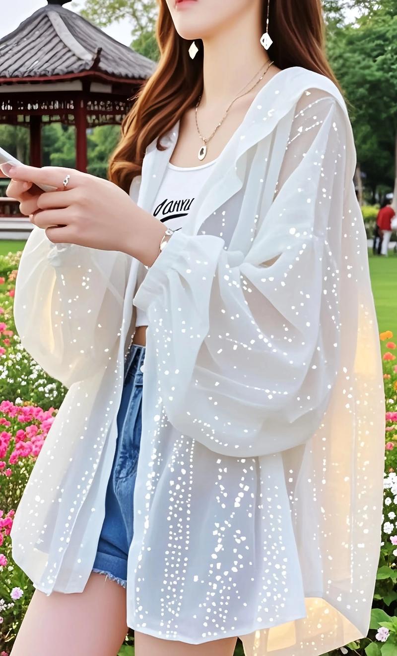 〖Two〗、防晒剂的作用 防晒衣中添加的防晒剂能够吸收或反射紫外线,从而有效阻挡紫外线对皮肤的伤害。这些防晒剂经过特殊工艺处理,能够均匀分布在防晒衣的纤维中,即使布料轻薄,也能确保防晒效果。轻薄防晒衣的优势 轻薄的防晒衣在保持防晒效果的同时,还具有更好的透气性和穿着舒适度。