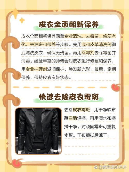 〖One〗、如果您白色的皮衣或绒服上出现了黑斑,首先可以尝试用少量牙膏加上同等量的白醋,再加入少量洗洁精混合在一起。 使用一块干净的抹布来擦拭污渍,注意不要让水分渗透到其他未受污染的区域。 采用干擦的方式进行清洁,反复擦拭多次以确保污渍尽可能被清除。 另外,您也可以考虑将污渍部位用醋浸泡一段时间,这样也能帮助去除黑斑。