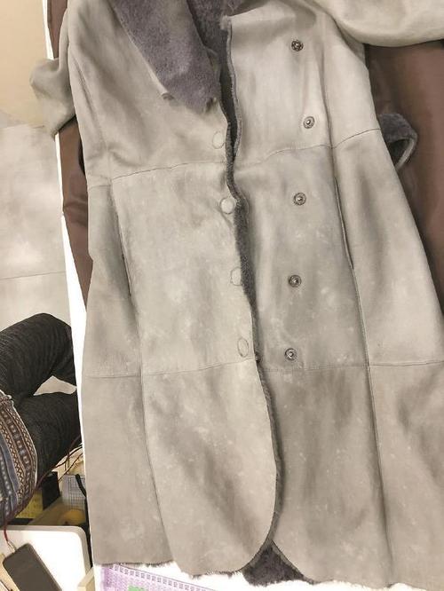 白色皮衣绒服上了黑斑、请问用什么洗能洗干净?