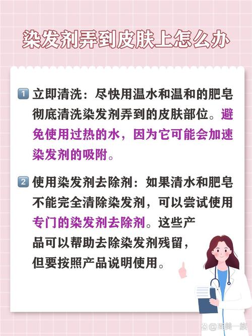 染发剂沾到手上后,应立即用大量清水冲洗,以便尽可能去除未干燥的染料。 如果染料已经干燥在皮肤上,可以使用氨水或冷烫液来擦除。这两种物质能够有效分解染料,使其从皮肤上脱落。 若手上有染发剂而现场没有氨水或冷烫液,可以用湿毛巾蘸取烟灰来擦拭染有染发剂的区域。