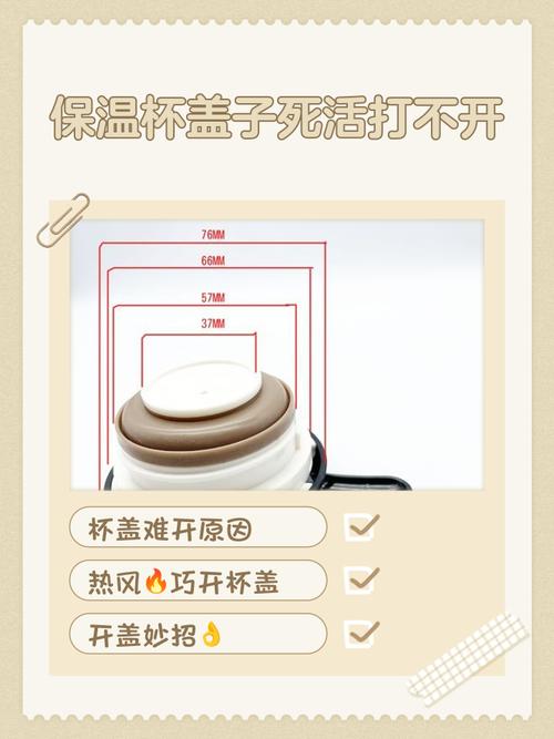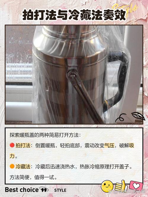 〖Five〗、泡热水里:找个大点的盆,倒上热水,把保温桶放进去泡一会儿,等里面的空气热胀冷缩了,就容易打开了。给杯盖加热:用吹风机或者热毛巾给杯盖加热一下,让它和杯体之间有点缝隙,这样就好拧开了。