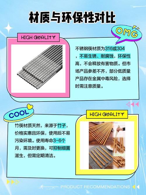 〖Four〗、综上所述,木制筷子、竹筷子和合金筷子都是适合日常使用的筷子材质。木制筷子天然环保,手感好,但费用相对较高且需要保养;竹筷子费用低廉,环保耐用,但需要注意清洁消毒;合金筷子结实耐用,易清洗不发霉,但手感可能不如木质筷子。根据个人喜好和预算,您可以选取最适合自己的筷子材质。
