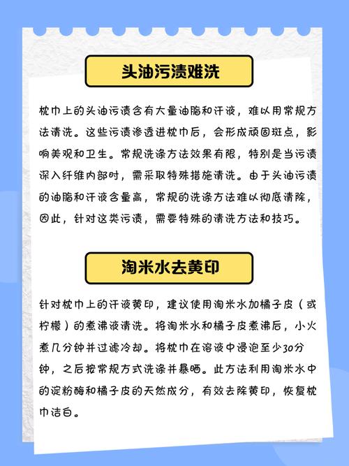 白醋清洗法。在污渍处滴几滴白醋,然后用肥皂擦洗,再浸泡几次,直到污渍去除。 在污渍上涂抹适量的洗涤液,等待10『1』5分钟,然后正常揉搓。洗衣前记得检查衣物的洗涤标签,以防损坏。枕头上不小心染了刚染发后掉的颜色怎么洗得掉呢?您可能需要使用可溶性液体来清洗。