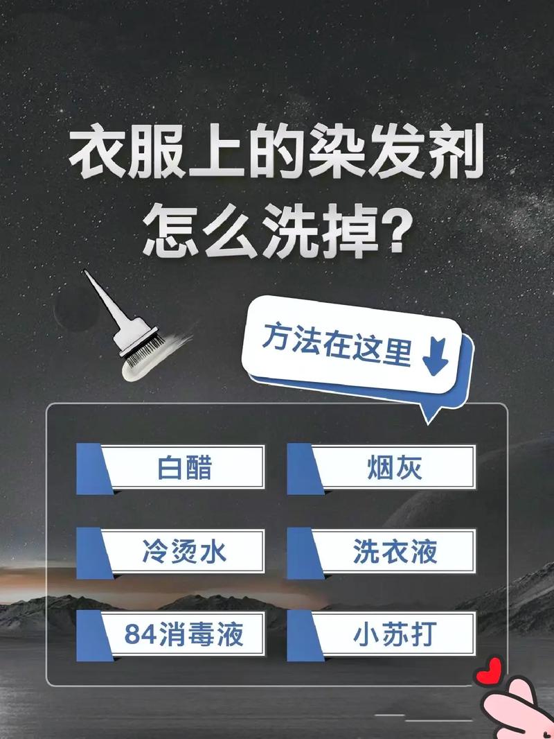 〖Five〗、衣服上沾了染发剂,可以尝试以下几种巧妙的清洗方法。 白醋清洗法:在温水中加入适量白醋,将沾有染发剂的部分浸泡其中15 - 20分钟,之后轻轻揉搓,再用清水冲洗干净。白醋的酸性成分有助于分解染发剂。