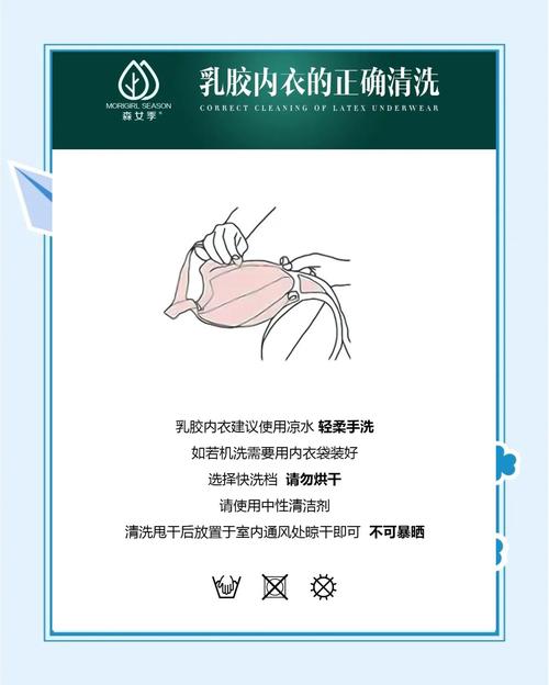 〖Three〗、选用内衣专用清洁剂进行清洗。这类清洁剂通常温和无刺激,且能有效去除内衣上的污渍和异味,同时不会对乳胶材质产生不良影响。接着,采用正确的清洗方式:将乳胶内衣浸泡在准备好的温水中,轻轻揉搓罩杯部分,以去除污渍和异味。注意避免用力过猛,以免损坏乳胶材质或导致其变形。
