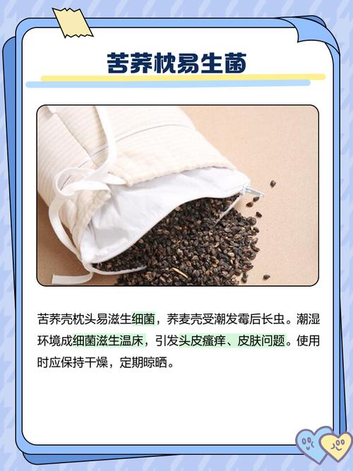 〖Two〗、荞麦壳枕头的危害主要包括以下几点:细菌滋生:由于荞麦壳枕头使用时间较长,且不易清洁,可能会导致局部细菌滋生。这些细菌可能会引发头皮瘙痒,甚至诱发皮肤性疾病,如头皮炎等。寒气入侵:荞麦壳偏寒性,长期使用可能会导致体内寒气入侵,进而引起外感风寒的症状,如头痛、恶寒、发热等。