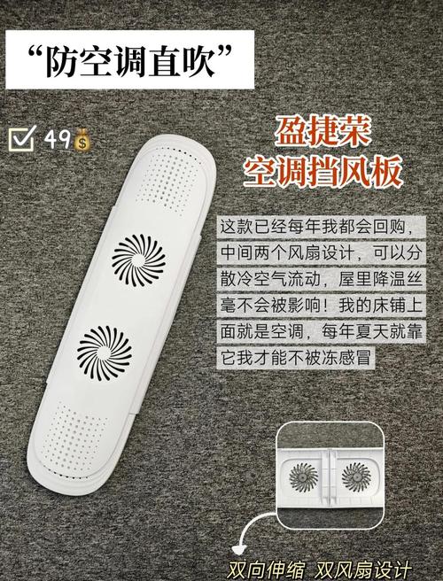 〖Two〗、根据个人需求:如果你对风特别敏感,尤其是坐月子期间,可以选取无孔的挡风板,确保冷风不会直接吹到身体。如果你更注重空气流通和温度均匀分布,可以选取有孔的挡风板。考虑空调使用环境:如果空调安装在卧室等小空间,且空调出风口直接对着床,建议选取无孔的挡风板。