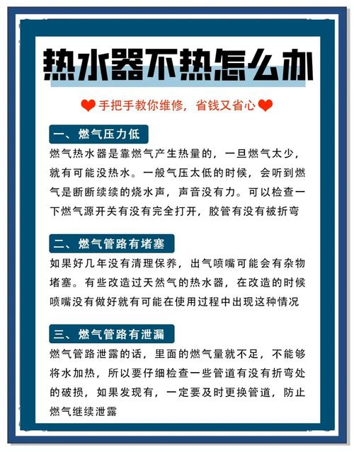 首先检查燃气供应情况。如果燃气不足,热水器可能无法正常加热。查看燃气表读数,确认是否欠费,或者检查燃气阀门是否完全打开。 查看热水器的设置。有可能是温度设置过低,导致达不到预期的升温效果。重新调整温度设置,一般可以通过热水器面板上的按钮进行操作。 检查加热元件是否损坏。