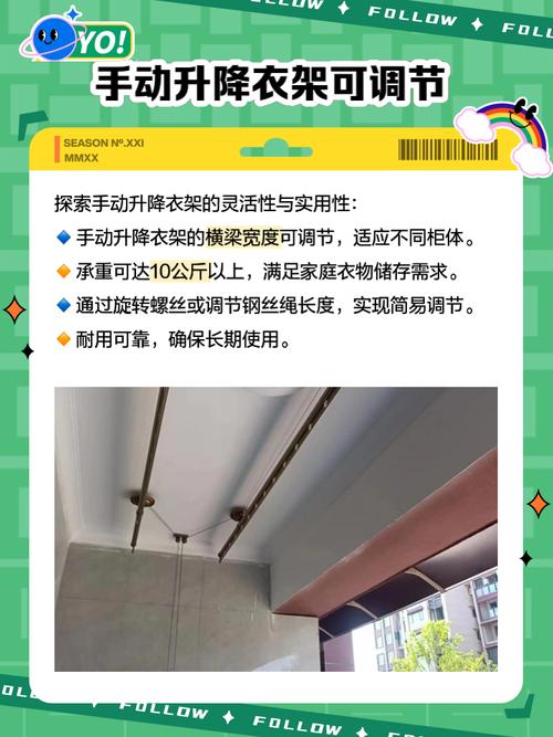 〖Two〗、承重能力:在选取升降衣架时,要注意其承重能力是否满足晾晒被子的需求。一般来说,质量合格的升降衣架都能承受较重的被子。晾晒位置:在晾晒被子时,要确保被子能够充分接受阳光照射。可以通过调节升降衣架的高度和角度,使被子处于最佳晾晒位置。