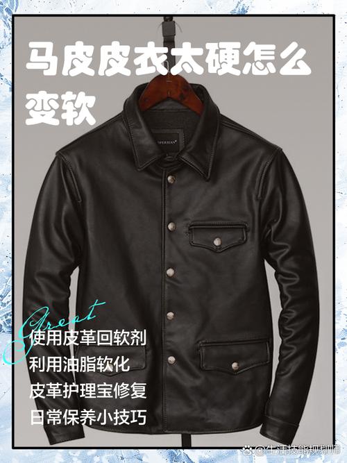 〖Four〗、使用吹风机:使用吹风机对皮衣进行加热,利用热力使皮纤维重新恢复弹性。这种方法可以缩短皮衣变软的时间。但需要注意的是,使用吹风机时一定要保持适当的距离,避免过热导致皮革受损。 使用皮革软化剂:使用专门为皮革软化而设计的软化剂,涂抹在皮衣表面,等待片刻后用布轻轻擦拭。