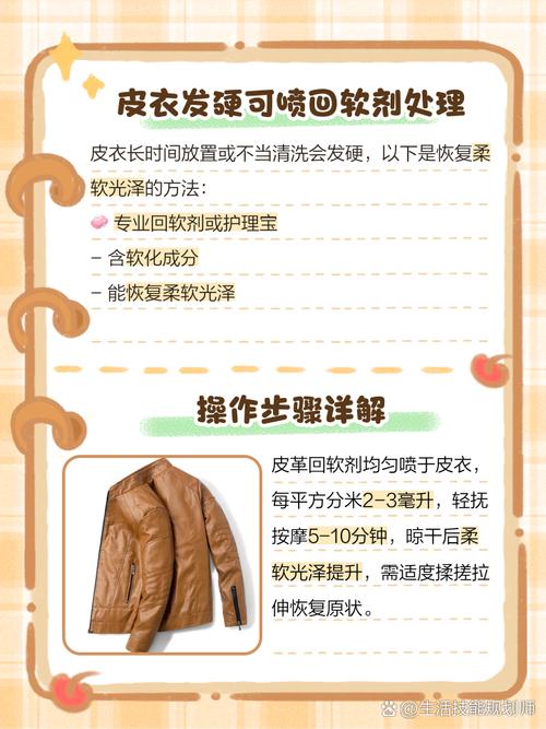 〖Three〗、可以利用白醋和水的混合溶液来处理。将适量白醋与水按1:2的比例调配好,用软布蘸取溶液轻轻擦拭皮衣变硬的部位,反复擦拭几次后,让其自然风干,能起到一定软化效果。因为白醋有一定的酸性,能帮助分解皮衣表面可能导致变硬的物质。还可以使用专业的皮革护理油。
