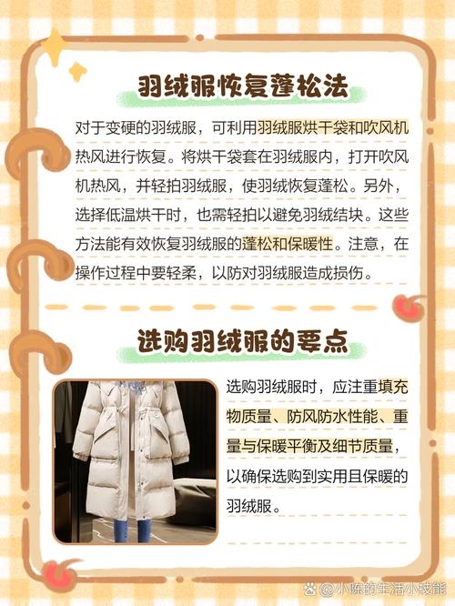 面料保养方面,定期使用柔软剂或护理液保养,有助于保持面料柔软度和保暖性。对于已经老化发硬的面料,可以尝试使用柔软剂或护理液进行保养,若无效则需更换新的面料。预防面料发硬,建议选购优质羽绒服,了解其生产工艺和面料质量。注意洗涤和保养方式,根据羽绒服材质和污渍程度选取合适的洗涤方式和洗涤剂。