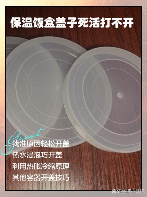〖One〗、第一种方法是使用尖锐物体在盖子上刺一个小洞,让空气进入盒内,这会使内部压力平衡,从而自然打开盖子。第二种方法是将饭盒放入热水中浸泡5『1』0分钟,通过受热膨胀,内部压力增加,盖子也容易打开。但需注意,此方法可能含有致癌物。