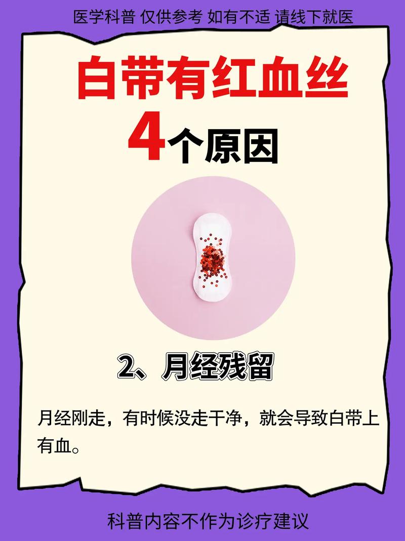 〖Three〗、处理建议:这是正常现象,无需过于担心。妇科疾病:疾病类型:患有子宫内膜息肉、宫颈管息肉、黏膜下肌瘤等疾病的患者,也可能出现月经过后白带有血丝的情况。处理建议:需要及时到医院就诊,进行对症治疗。性生活刺激:现象描述:月经刚干净就有性生活,由于性生活时刺激宫颈,可能导致子宫收缩,从而出现血丝。