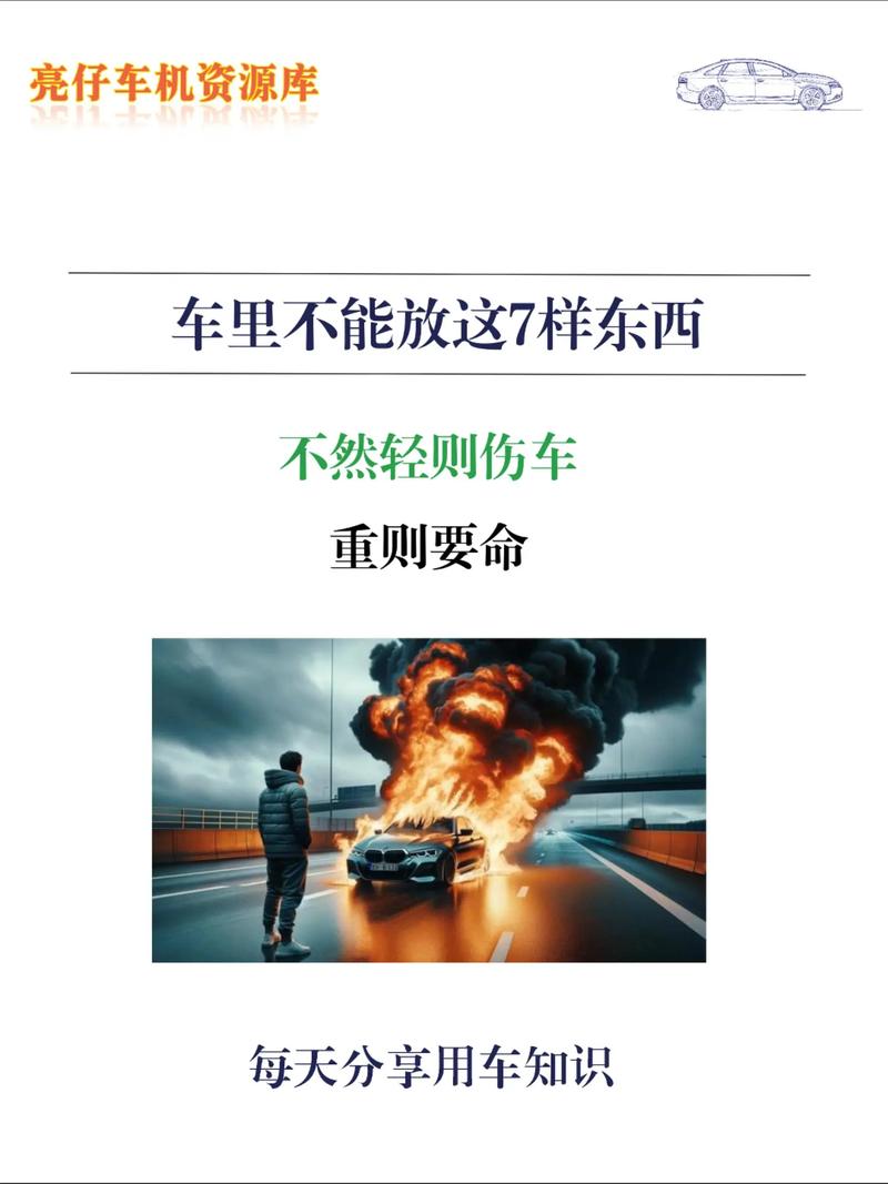 〖Four〗、车里放置不当可能带来严重后果甚至危及生命的物品有以下几类:香水:很多车载香水是化学合成的,在高温环境下,比如夏天车内温度升高时,香水中的化学物质可能会发生分解,释放出有害气体。
