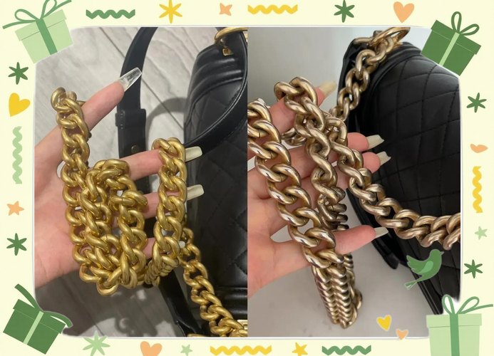 〖Five〗、针对香奈儿链条包链条太长的问题,可以采取以下办法:临时应急方法:在链条接口处打个结,以缩短链条长度。但这并不是长久之计,因为长期打结可能会导致金属链条氧化发黑,甚至在使用时粘在衣服上。专业改短:推荐到专业的包包维修机构将链条彻底改短,这是最一劳永逸的解决办法。
