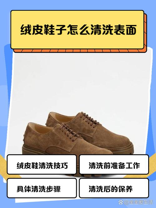 绒面鞋的清理小妙招如下: 使用洗洁精、白醋和清水混合溶液清洗 准备溶液:首先准备一个容器,倒入两滴洗洁精,再加入少许白醋,最后加入清水稀释。 初步除尘:使用百洁布顺着一个方向擦拭鞋面,以去除鞋子表面的灰尘。