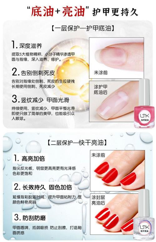 〖Four〗、指甲油免烤微胶,这种树脂凝胶,以其无毒、无味、环保、免烤的特点,成为现代美甲的潮流象征。与传统指甲油相比,它的原料源自天然树脂,环保且无毒,保证了使用者的健康安全。指甲油免烤与需要烤的区别主要体现在成分与持久度上。