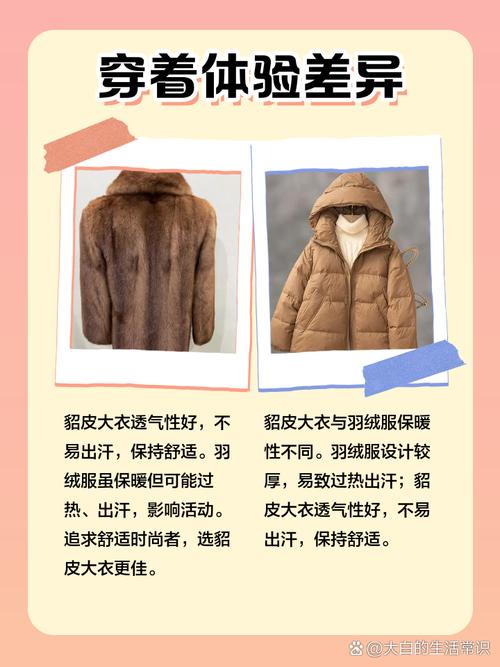 〖Three〗、貂皮大衣相比羽绒服更暖和。以下是关于两者保暖性的详细对比:保暖性能 貂皮大衣:貂皮大衣因其采用动物的绒毛制成,具有极佳的保暖性能。这些绒毛能够阻挡空气流动,有效减少身体热量的散发。貂皮的底绒厚薄是决定其保暖性的关键因素,优质的貂皮大衣通常具有较厚的底绒,因此保暖效果更佳。