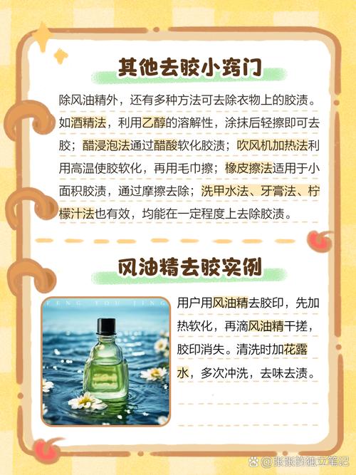 风油精也能用于去除衣物上的热熔胶。风油精能快速溶解热熔胶,便于清理,虽然速度稍慢,但更安全、环保,且不伤身体。 使用丙酮或汽油等有机溶剂也能溶解热熔胶。 冰袋法适用于去除衣物上的热熔胶。将冰袋放在热熔胶上,冷却使其硬化,之后即可撕除,注意避免使用锐利工具以防损伤衣物表面。