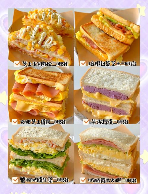加热三明治:如果你喜欢热三明治,可以将组装好的三明治放入预热的三明治机或平底锅中,用中火加热至奶酪融化,面包变得金黄酥脆。如果没有三明治机,也可以使用微波炉加热,但效果可能不如烤箱或平底锅。切片和装盘:将加热好的三明治从中间切开,这样更容易食用,也更有食欲。